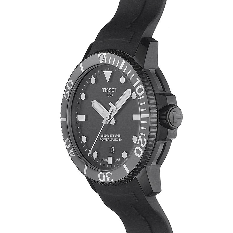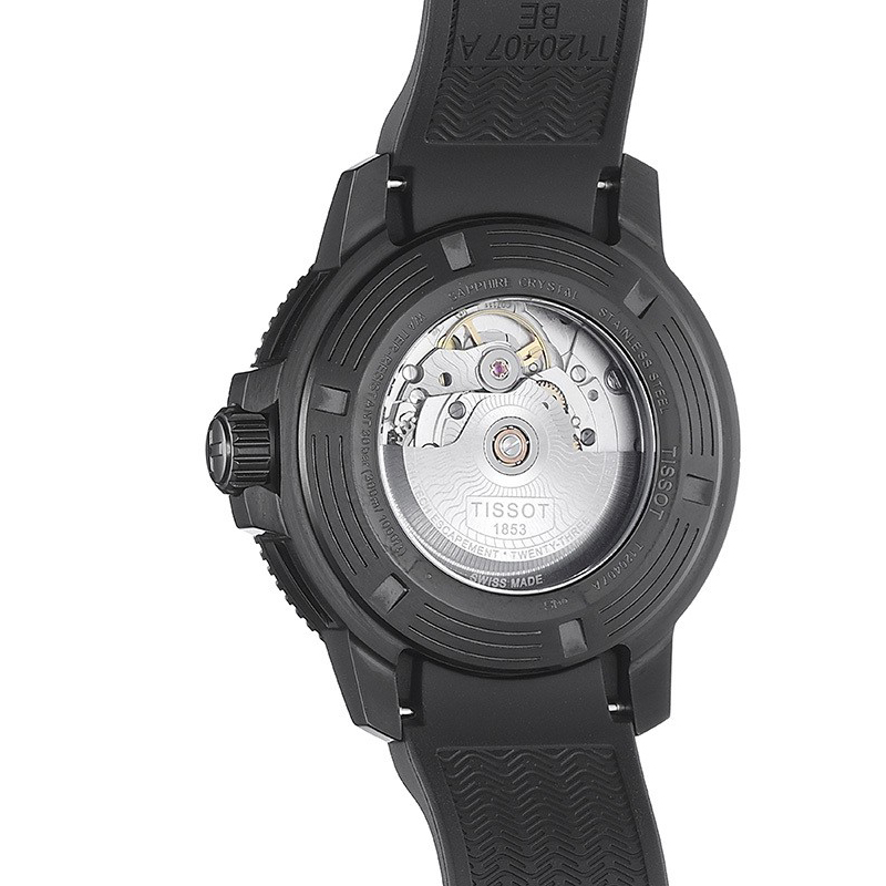 Ανδρικό ρολόι Tissot ελβετικής κατασκευής με αυτόματο μηχανισμό, από μαύρο ανοξείδωτο ατσάλι με μαύρο καντράν και μαύρο καουτσούκ λουράκι.