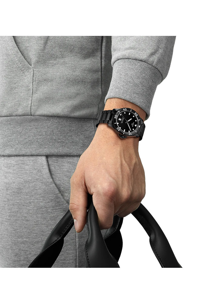 Ανδρικό Ρολόι Tissot Ελβετικό από ανοξείδωτο ατσάλι με μαύρο καντράν και μπρασελέ.