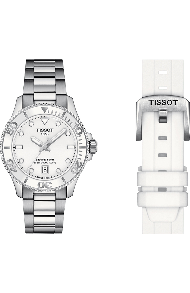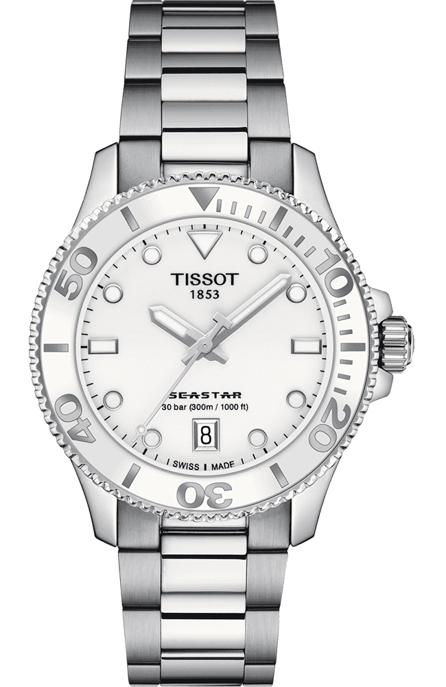 Γυναικείο Ρολόι Tissot Ελβετικής κατασκευής από ανοξείδωτο ατσάλι με λευκό καντράν και μπρασελέ.