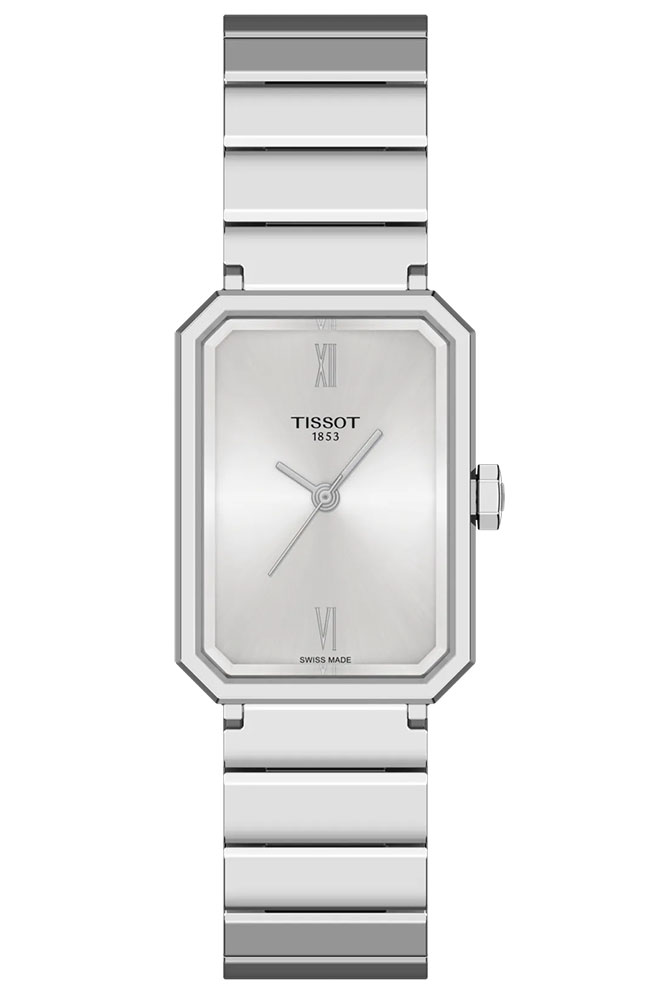 Γυναικείο Ρολόι Tissot Ελβετικής κατασκευής από ανοξείδωτο ατσάλι με ασημί καντράν και μπρασελέ.