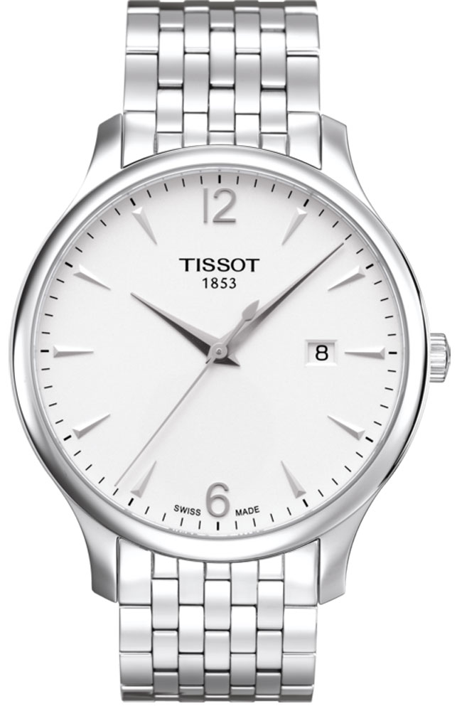 Ανδρικό Ρολόι Tissot ελβετικής κατασκευής από ανοξείδωτο ατσάλι με λευκό καντράν και μπρασελέ.
