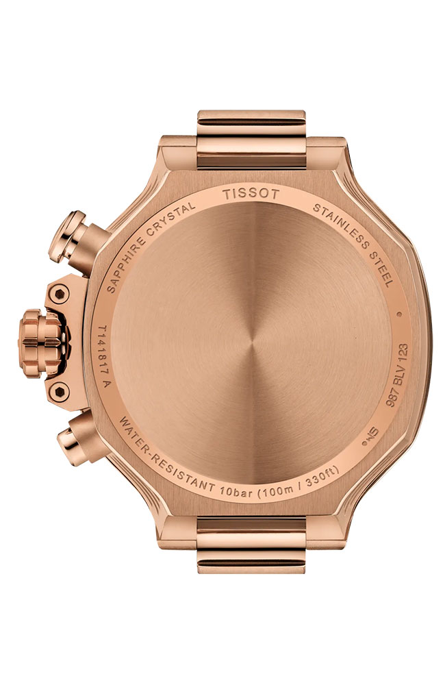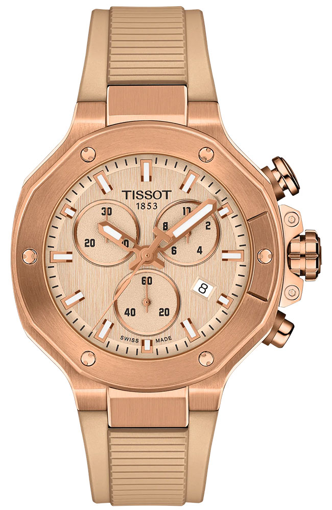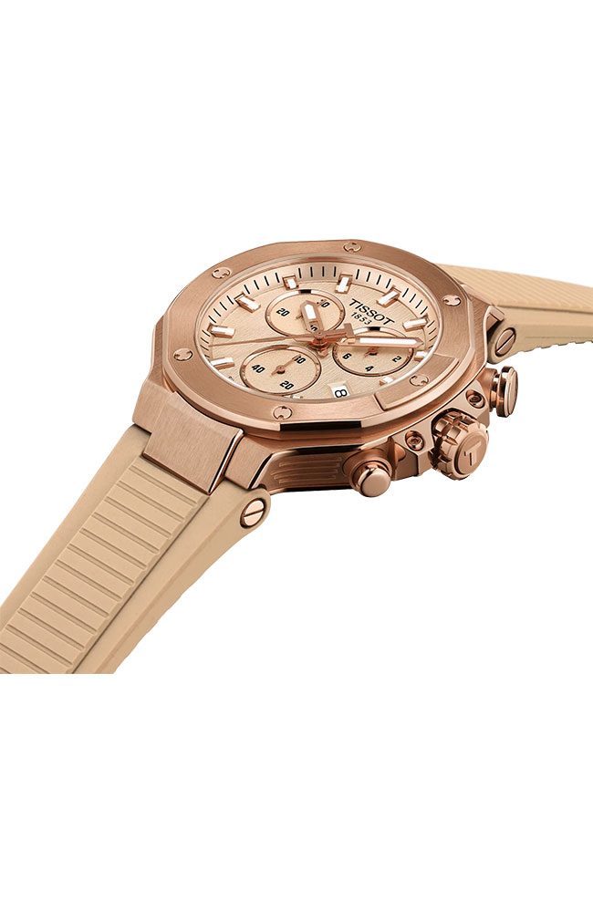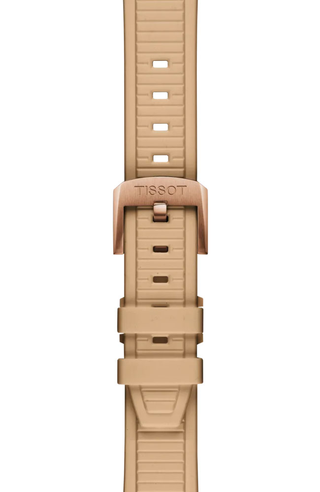 Ανδρικό Ρολόι Tissot Ελβετικό από ανοξείδωτο ατσάλι με ροζ χρυσό καντράν και καουτσούκ λουράκι.