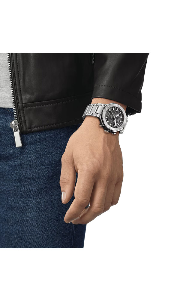 Ανδρικό Ρολόι Tissot Ελβετικό από ανοξείδωτο ατσάλι με μαύρο καντράν και μπρασελέ.