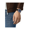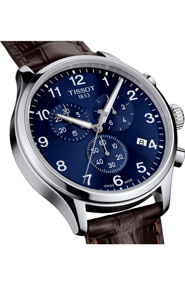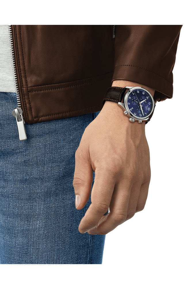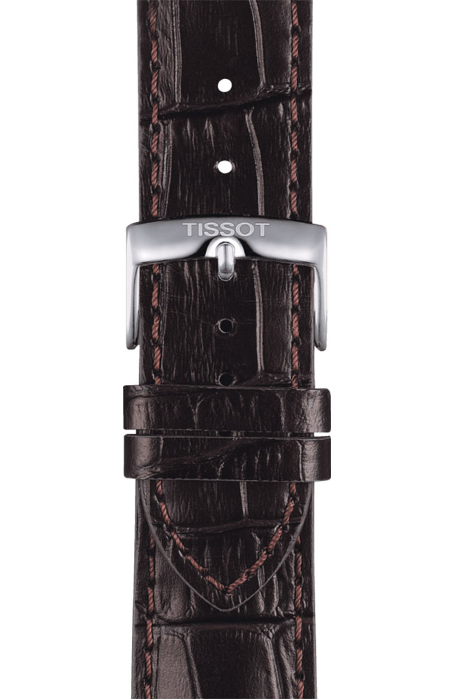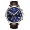 Ανδρικό ρολόι Tissot ελβετικής κατασκευής από ανοξείδωτο ατσάλι, μπλε καντράν και καφέ δερμάτινο λουράκι.