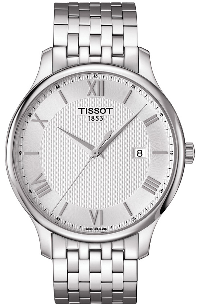 Ανδρικό Ρολόι χειρός Tissot Ελβετικής κατασκευής από ανοξείδωτο ατσάλι με ασημί καντράν και μπρασελέ.