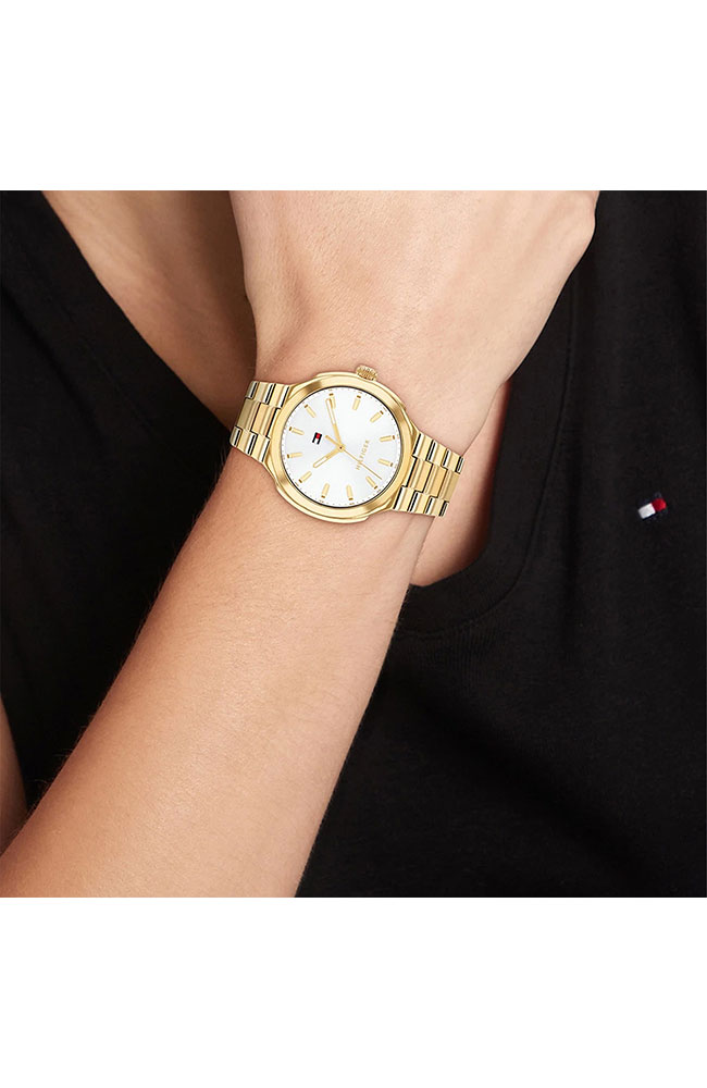 Γυναικείο ρολόι Tommy Hilfiger από ανοξείδωτο ατσάλι με λευκό καντράν και μπρασελέ.