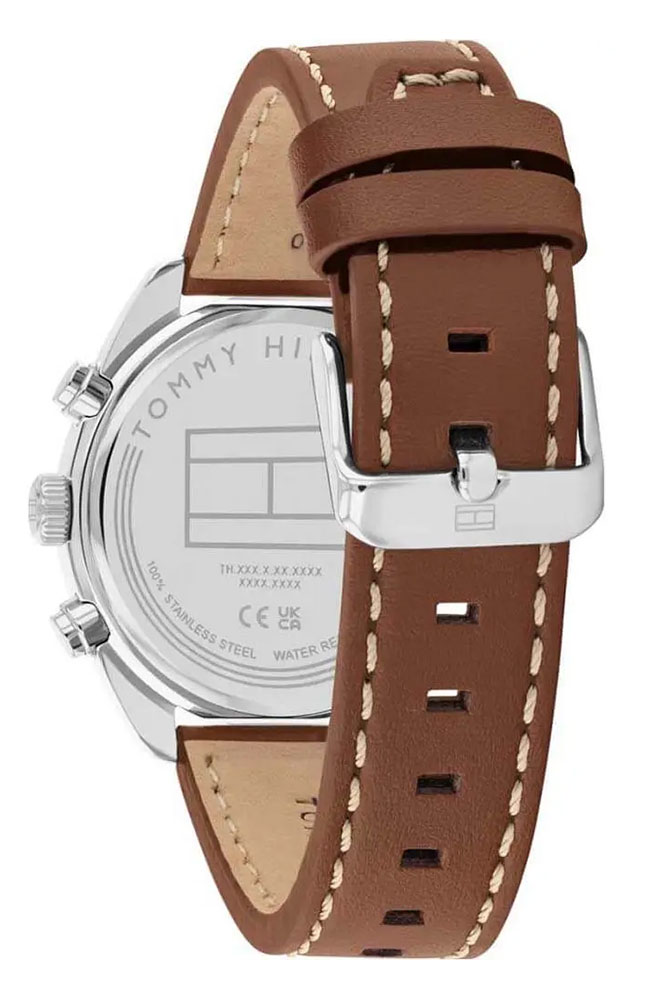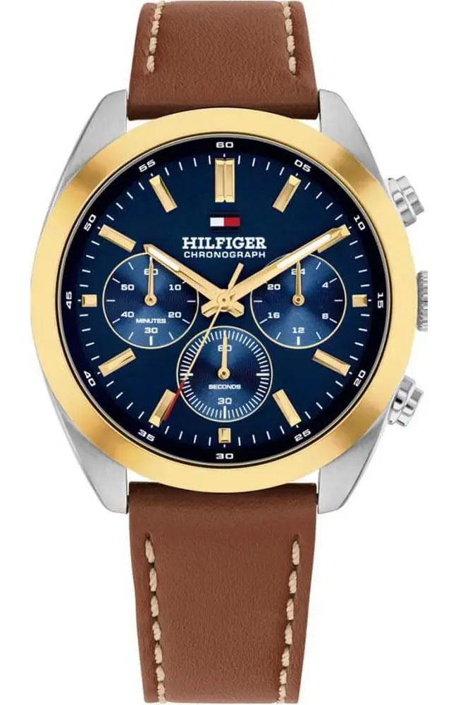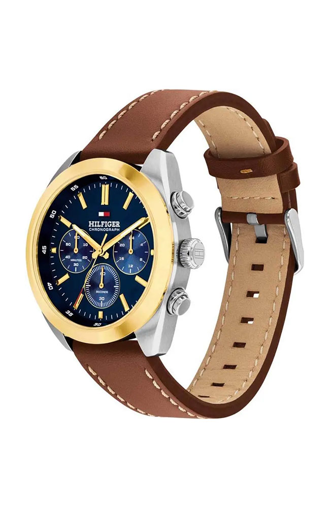 Ανδρικό ρολόι Tommy Hilfiger από ανοξείδωτο ατσάλι με μπλε καντράν και δερμάτινο λουράκι.