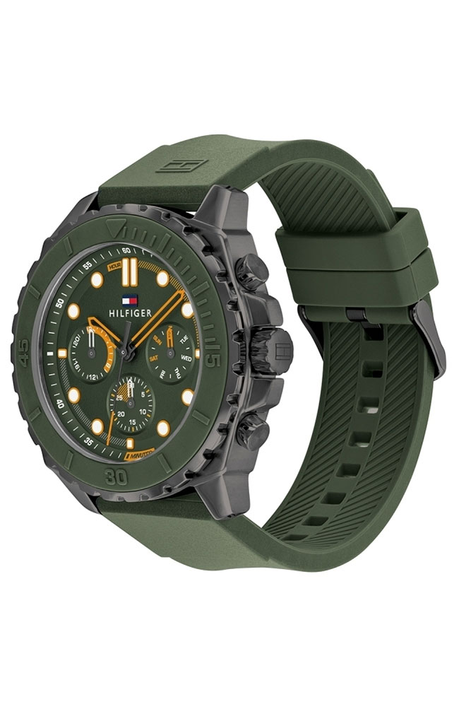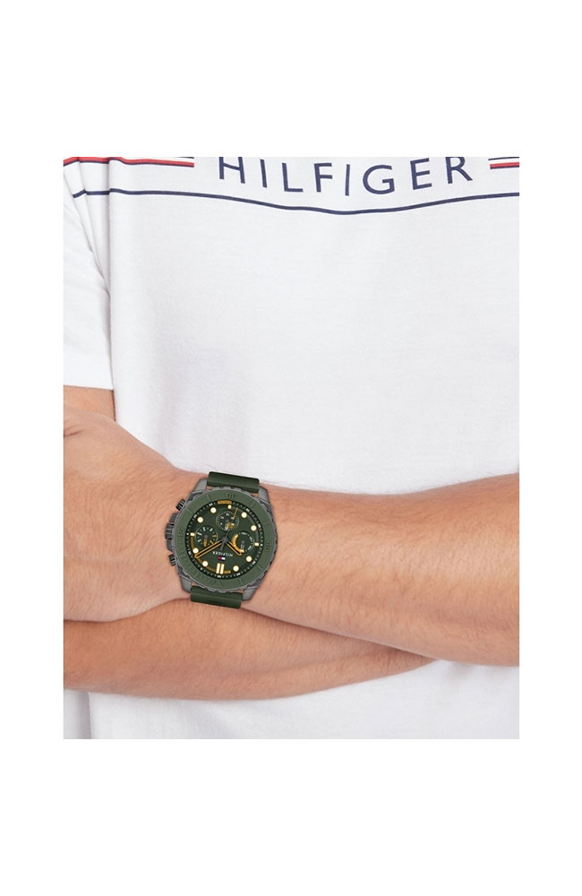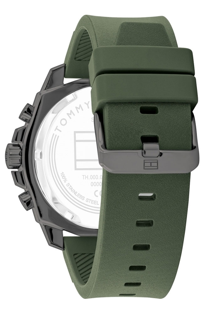 Ανδρικό ρολόι Tommy Hilfiger από ανοξείδωτο ατσάλι με χακί καντράν και χακί καουτσούκ λουράκι.