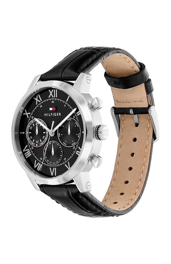 Ανδρικό ρολόι Tommy Hilfiger από ανοξείδωτο ατσάλι με μαύρο καντράν και δερμάτινο λουράκι.