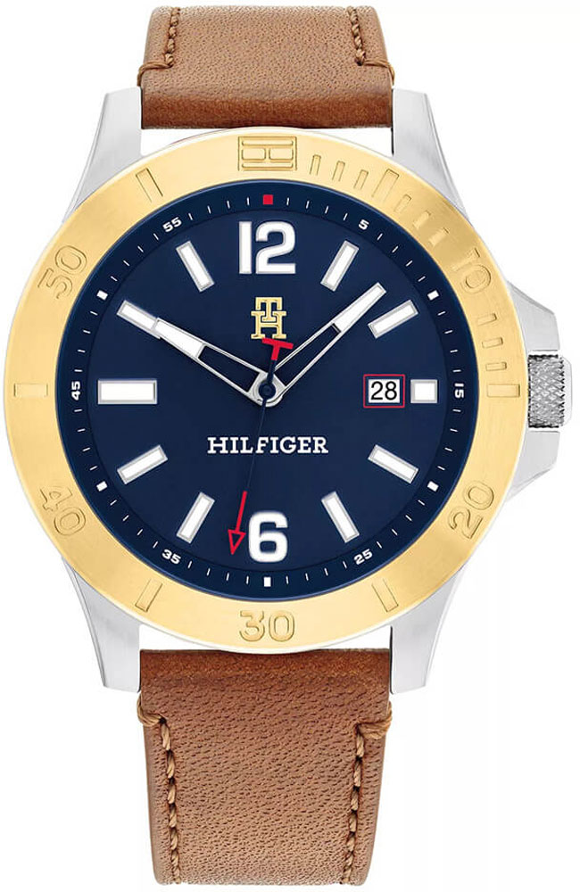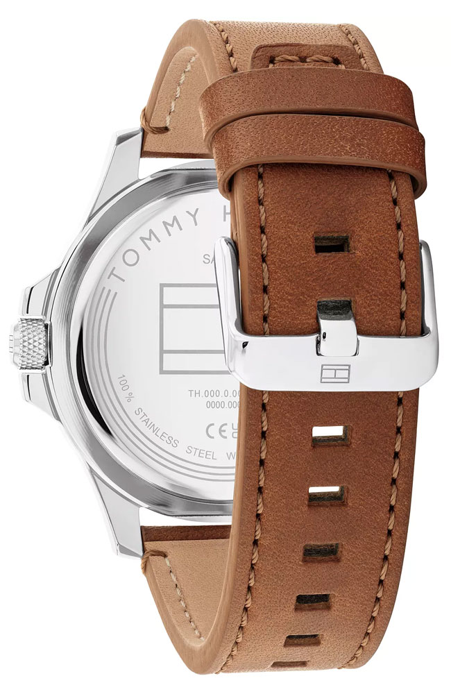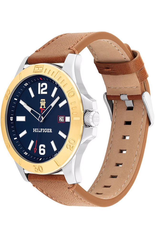 Ανδρικό ρολόι Tommy Hilfiger από ανοξείδωτο ατσάλι με μπλε καντράν και δερμάτινο λουράκι.