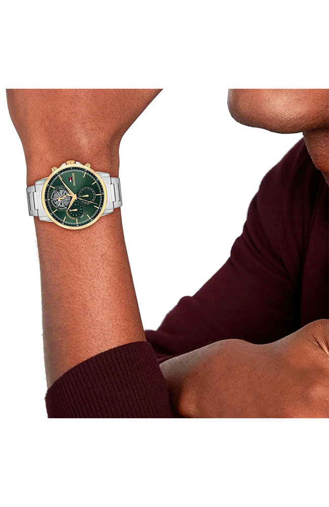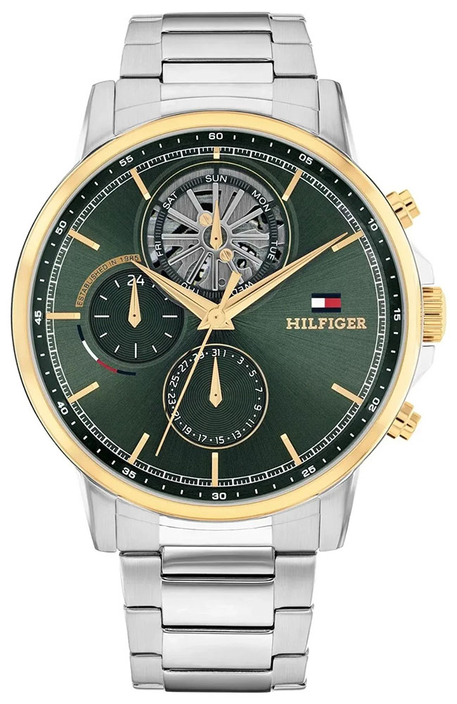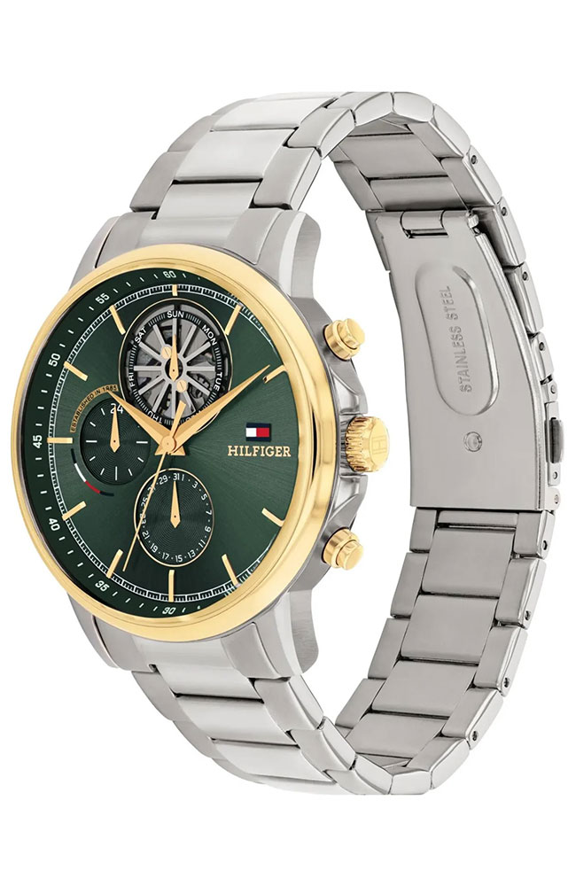 Ανδρικό ρολόι Tommy Hilfiger από ανοξείδωτο ατσάλι με πράσινο καντράν και μπρασελέ.