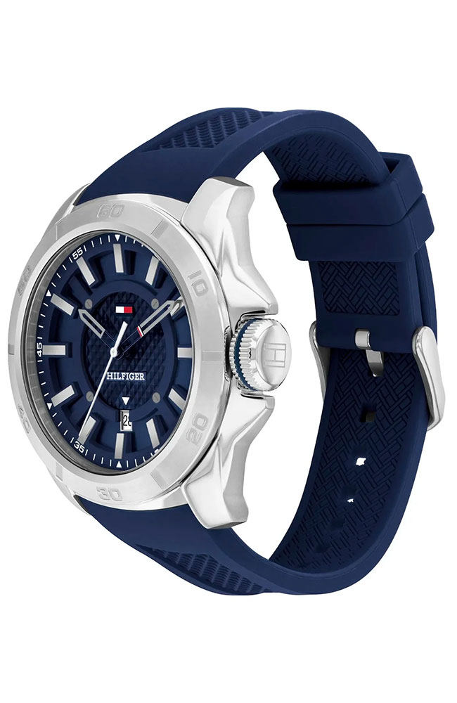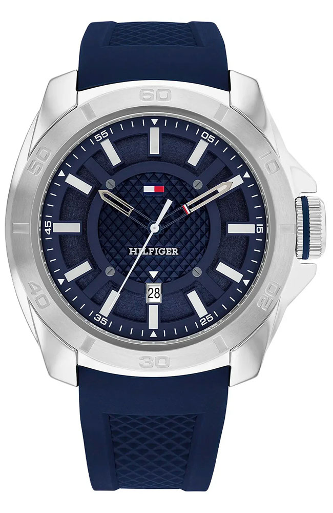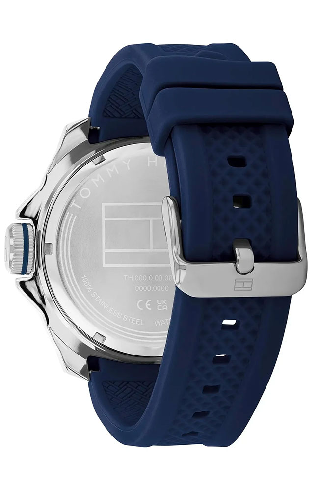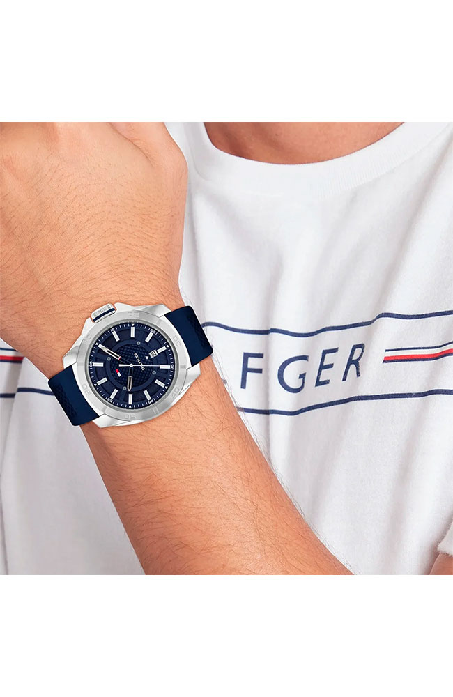 Ανδρικό ρολόι Tommy Hilfiger από ανοξείδωτο ατσάλι με μπλε καντράν και καουτσούκ λουράκι.