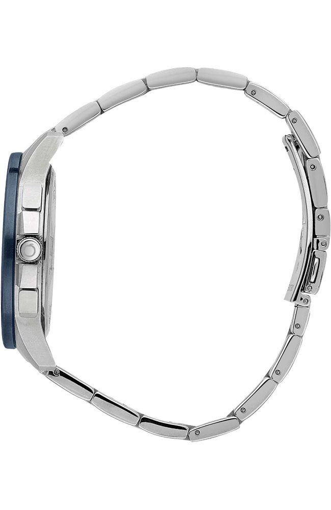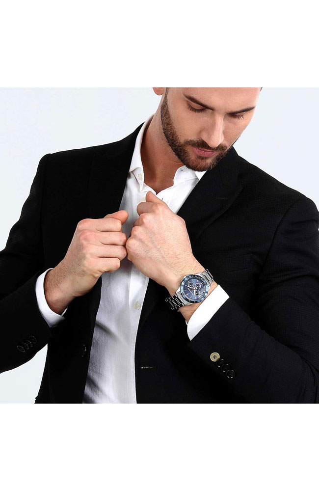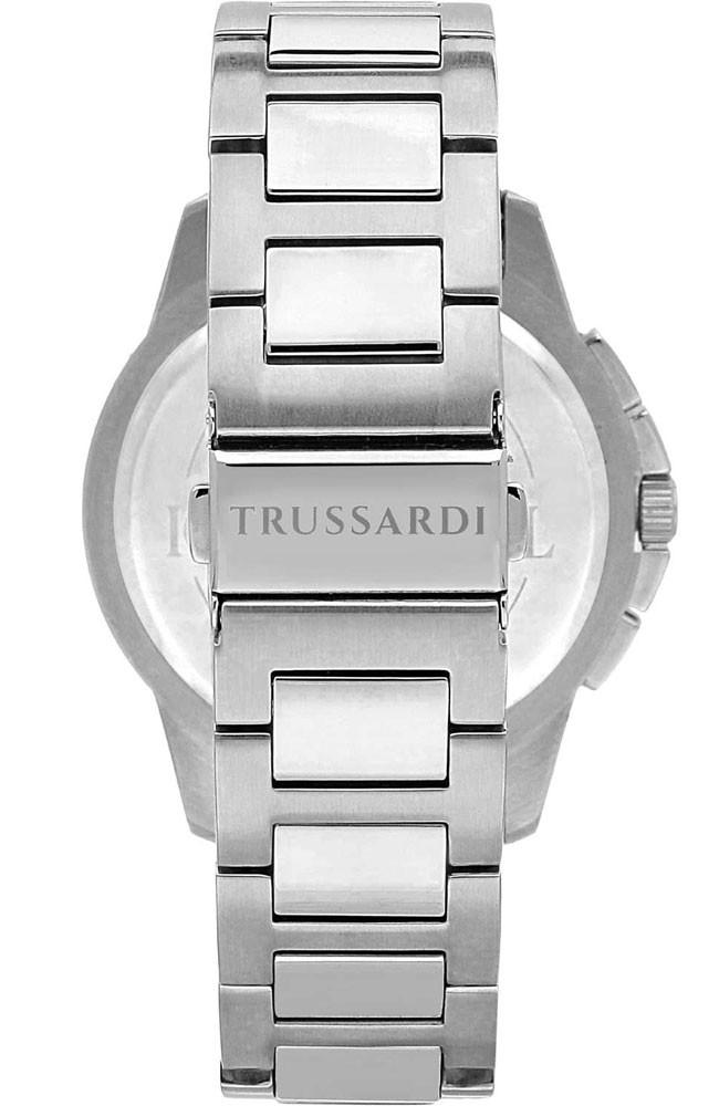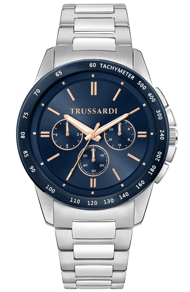 Ανδρικό ρολόι Trussardi από ανοξείδωτο ατσάλι με μπλε καντράν και ασημί μπρασελέ.