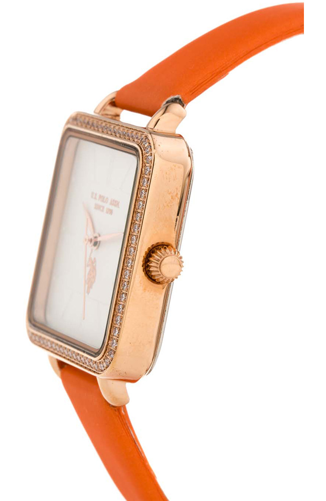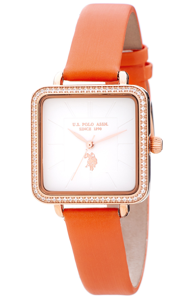 Γυναικείο ρολόι U.S. Polo από ανοξείδωτο ατσάλι με λευκό καντράν και δερμάτινο λουράκι.