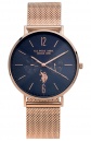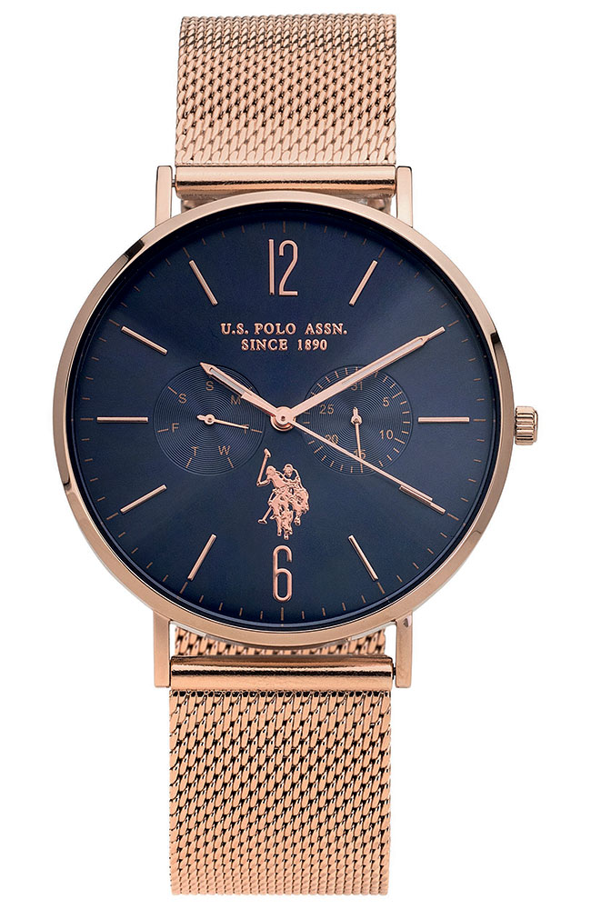Ανδρικό ρολόι U.S. Polo από ροζ επιχρυσωμένο ανοξείδωτο ατσάλι με μπλε καντράν και μπρασελέ.