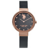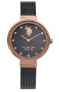 Γυναικείο ρολόι U.S. Polo με μαύρο καντράν, πέτρες Ζιργκόν και μπρασελέ.