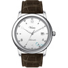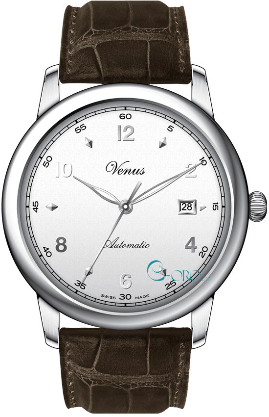 Ανδρικό Ρολόι Χειρός Venus με ελβετικής κατασκευής από ανοξείδωτο ατσάλι με ασημί καντράν και καφέ δερμάτινο λουράκι.