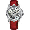 Γυναικείο Ρολόι Χειρός Venus ελβετικής κατασκευής από ανοξείδωτο ατσάλι με λευκό φίλντεσι καντράν και κόκκινο δερμάτινο λουράκι.