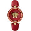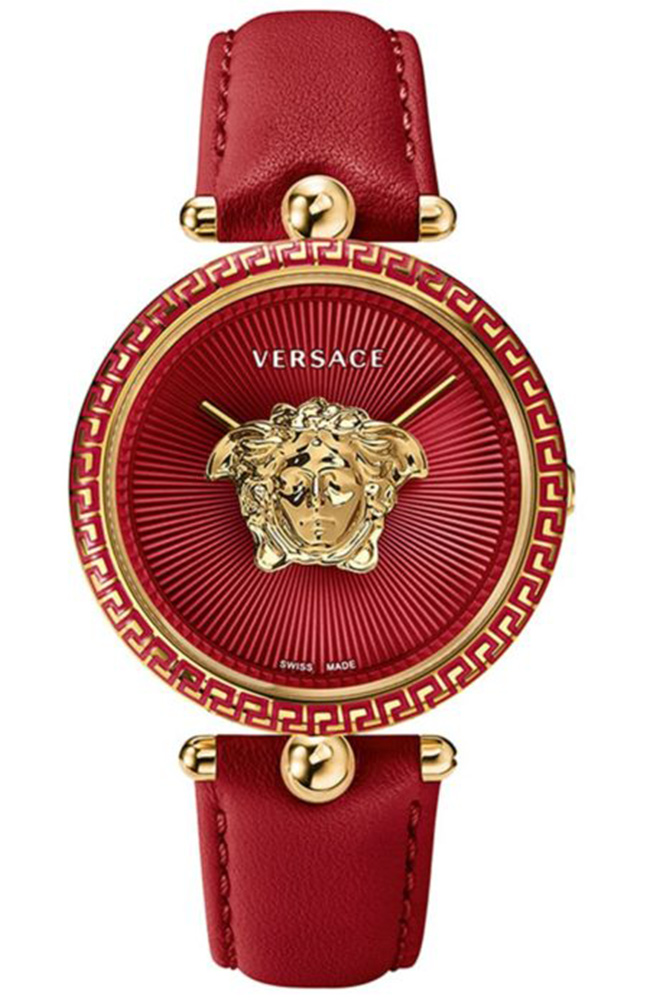 Γυναικείο ρολόι Versace ελβετικής κατασκευής από ανοξείδωτο ατσάλι με δίχρωμο καντράν και κόκκινο δερμάτινο λουράκι.