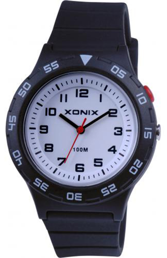 Παιδικό ρολόι Xonix με λευκό καντράν και μαύρο καουτσούκ λουράκι.