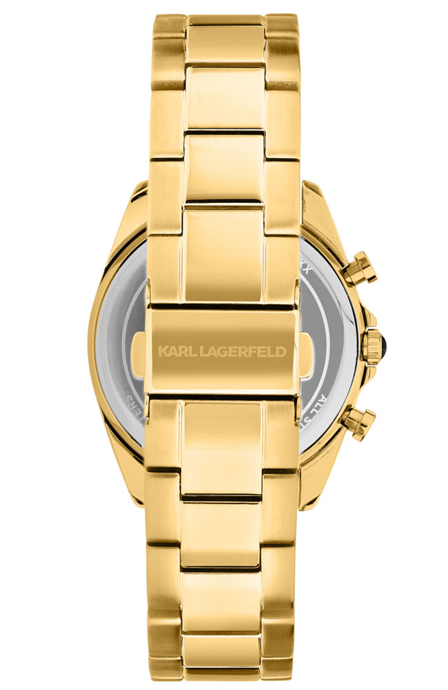 Γυναικείο ρολόι χρονογράφος Karl Lagerfeld από επιχρυσωμένο ανοξείδωτο ατσάλι με χρυσό καντράν και χρυσό μπρασελέ.
