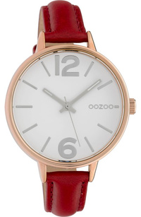OOZOO Timepieces Rose Gold Red Leather Strap C10431